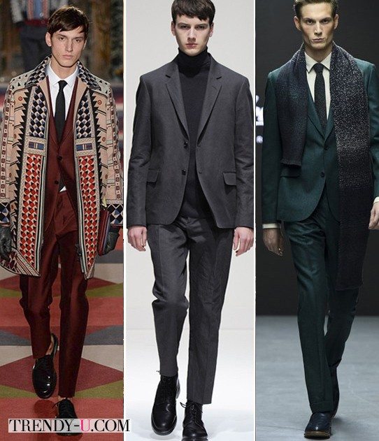 Костюмы из натуральных тканей, приталенные пиджаки, короткие брюки – залог успешного лука этой осенью. Модные цвета для мужского костюма — все оттенки серого и темно-зеленого. Самые смелые могут купить к случаю мужской костюм цвета Riverside — ярко-синего.