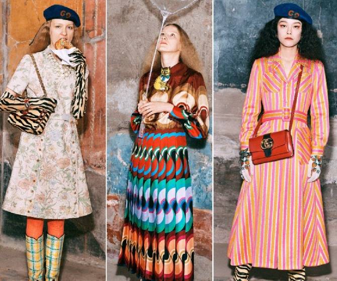 Тренды: отрезные модели с расклешенной юбкой, длинные рукава на манжете, аксессуары с принтом «зебра», короткие и длинные перчатки: