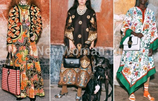Тренды: бохо-стиль: яркие ткани, свободный расклешенный силуэт, шелк, платье-платок, платье-клумба, блестящая вышивка:
