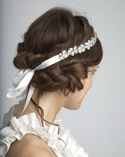 Не менее утонченно и изыскано смотрятся ободки в виде обручей на волосах невест. Такие ободки отлично подчеркнут прическу любой модницы. Они могут быть тонкими и широкими, гладкими и ребристыми, украшенными стразами, бусинами или жемчугом.
