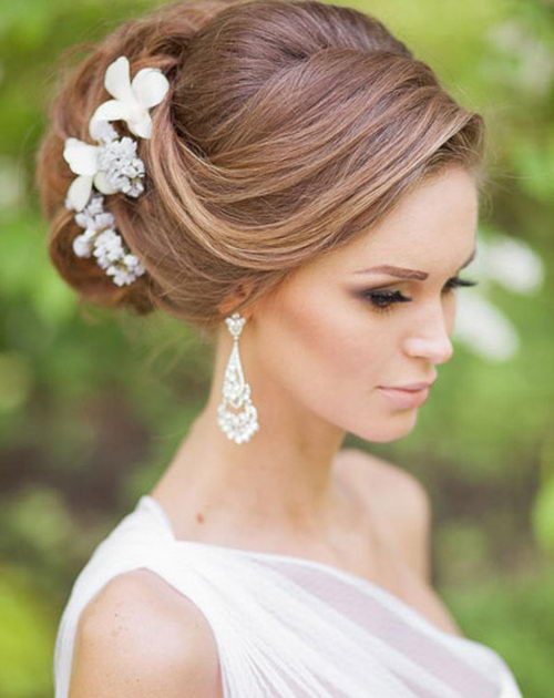 - Обязательно необходимо использовать украшения. Особенно романтично смотрятся цветы, красиво украшающую укладку.