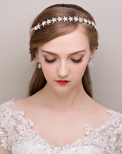 Также всю сплошную поверхность ободка или ленты, можно украсить огромным количеством камней, бусин, страз и кристаллов, чтобы аксессуар смотрелся ярко на волосах невесты. Так же можно прикрепить элементы из камней, кристаллов или страз к одной части украшения, чтобы не перенасыщать аксессуар лишними деталями. Подобные свадебные украшения хорошо подойдут под гламурный или винтажный стиль свадебного платья.