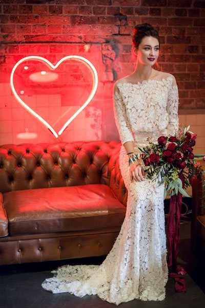 Вместо тысячи мерцающих камешков дизайнеры рекомендуют обратить внимание на черные акценты – еще один модный тренд 2022 – 2020 года. Украсьте свадебное платье черным поясом, черными цветами либо кружевом, и гости надолго запомнят такое смелое решение.