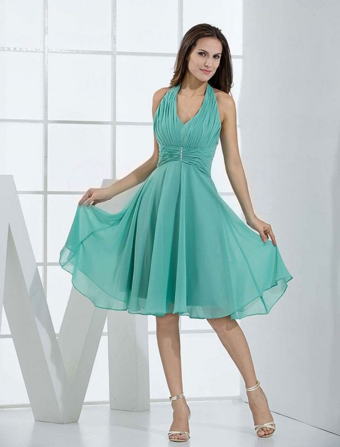 Свидетельница на торжество может надеть модель как длинную, так и короткую в зависимости от собственного предпочтения. Вполне уместным на свадьбе будет платье с большим декольте.