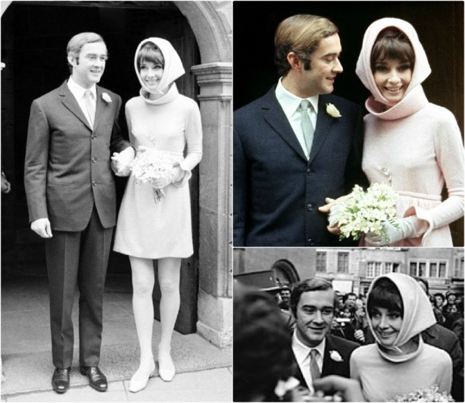 В 1969 году Одри снова вышла замуж за итальянца Андреа Дотти. Она не стала изменять своему безупречному вкусу и, на свадебную церемонию вновь выбрала платье от Givenchy. Дополнила образ популярная в те времена косынка.