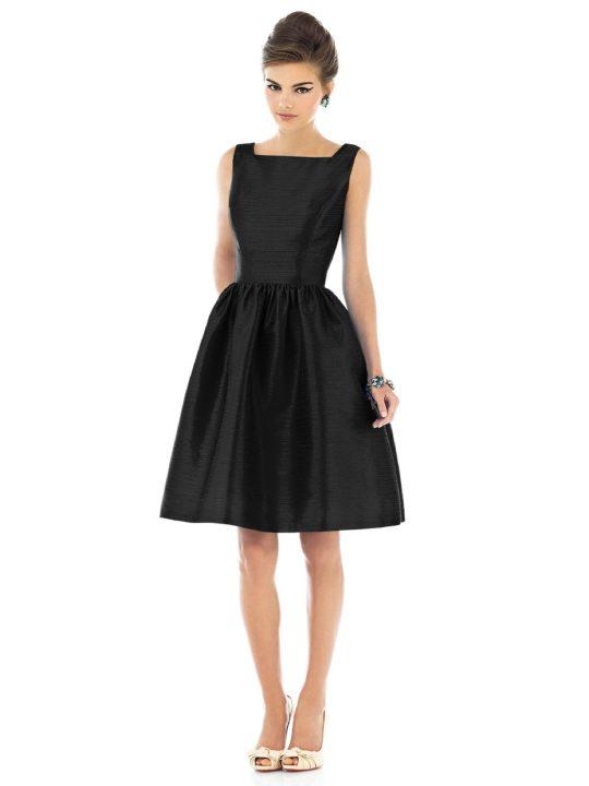 В платье такой модели Одри Хепберн снималась в фильме»Сабрина». Это было чёрное коктейльное платье. Платье полностью облегчало до талии и далее продолжалось пышной юбкой до колен. Интересен был вырез — он был горизонтальный, но спина при этом была открыта. Такая модель идеально подчеркивала длинную тонкую шею, хрупкий торс и тонкую талию. Сейчас существует много похожих моделей платьев. Оно прекрасно подойдёт в нынешней моде.