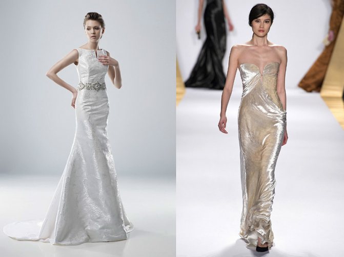 Свадебное платье прямого силуэта – простое и элегантное решение. Такой наряд может быть закрытым или иметь лиф на бретелях. В последнем случае платье может быть дополнено элегантным жакетом или болеро.