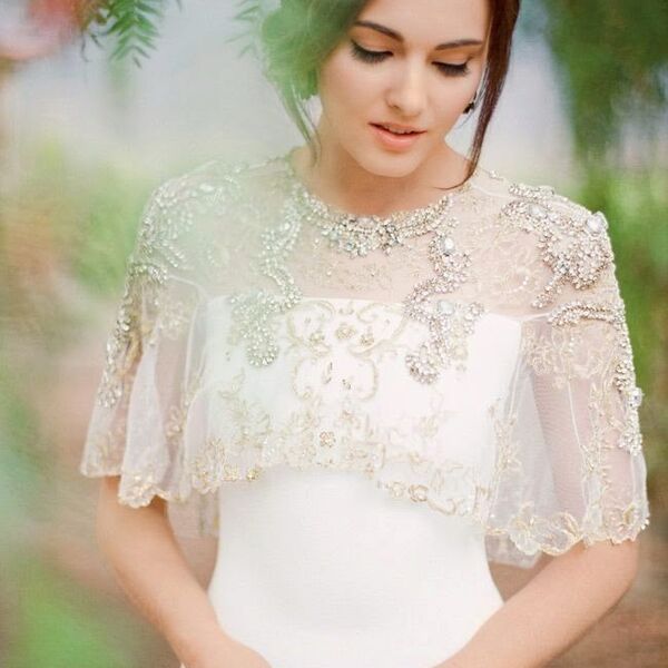 Согреться и дополнить твой образ невесты помогут также шарф, шаль или палантин. В зависимости от стиля свадьбы и твоих предпочтений ты можешь выбрать изящную шаль или вязанную накидку.