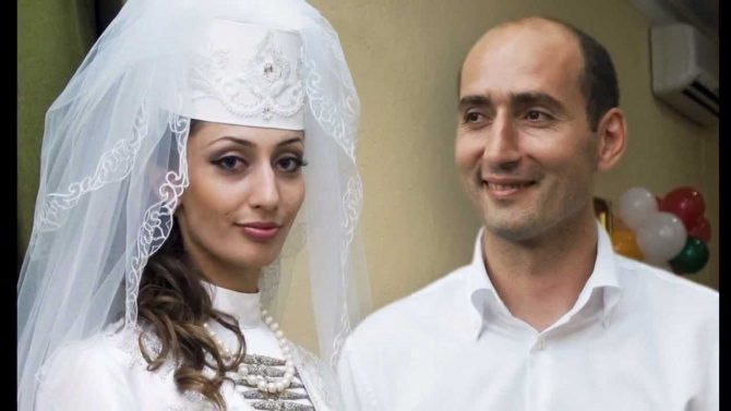 Свадебная одежда осетин полностью соответствует легендарному эпосу. Женихи уже редко облачаются в национальный осетинский костюм, но невесты не изменяют традициям. Ее наряд символизирует тело голубки, в котором когда-то предстала божественная царевна. Он состоит из обязательных элементов: длинных рукавов, которые символизируют возраст вступления в брак, нагрудники, узоры на подоле платья и на рукавах, а также металлический пояс. Само платье должно быть длиной в пол и полностью закрытым. Также наряд невесты дополняет шапочка, круглой формы, и фата.