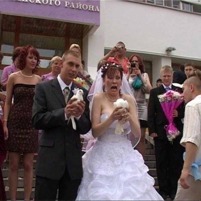 Голуби – это красиво и романтично? Похоже, у этой невесты другое мнение, и безобидные птицы превратили торжество в самую страшную свадьбу на ее памяти.