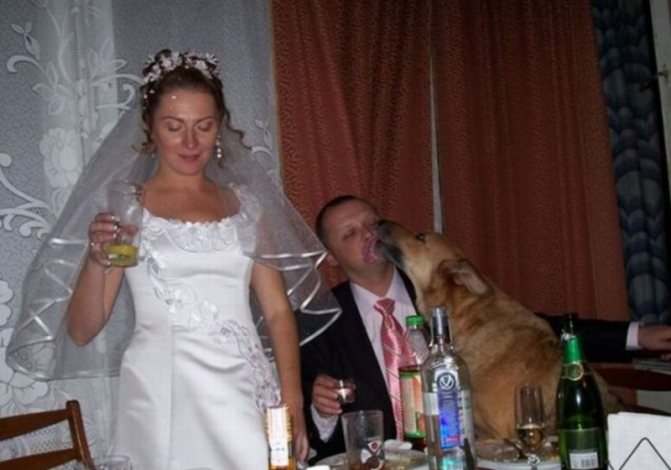 Собака искренне рада за хозяина. Надеемся, невеста окажется не из брезгливых…
