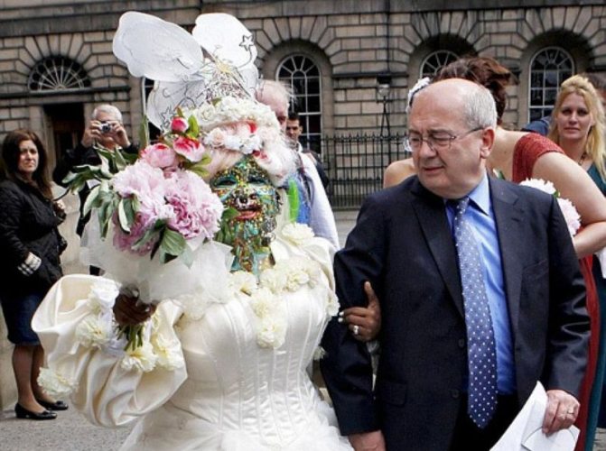 Свадьба самой пирсингованной в мире женщины явно напугала не одного прохожего. Ну а что, каждый заслуживает счастья, даже если и стремится до неузнаваемости изменить свой внешний вид.