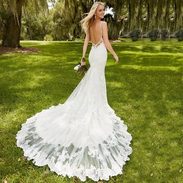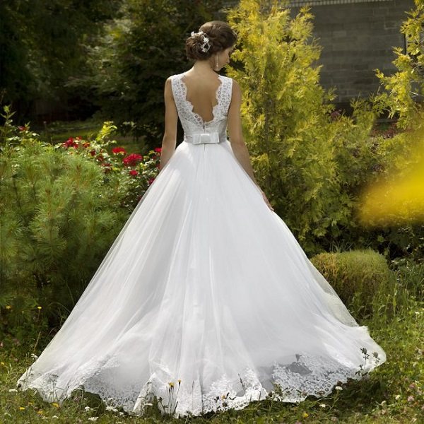 Со временем платья с обнаженной спиной прочно вошли в моду, в том числе, и свадебную. Главное при выборе такого платья – оно должно идеально сидеть по фигуре.