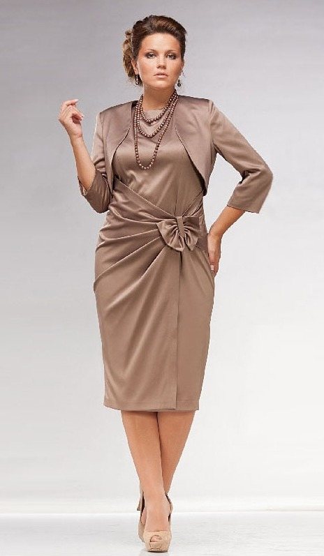 Платье с жакетом Пиджак может иметь укороченную форму. Очень часто производители предлагают платья с болеро. Данные изделия очень актуальны для женщин после 50 лет. Они скрывают недостатки фигуры, создают основной акцент на верхней части силуэта.