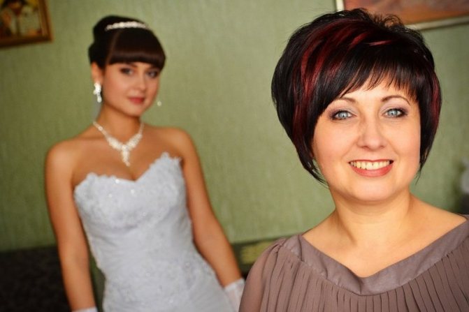 При выборе прически следует учитывать основные особенности своей внешности. Маме невесты можно посоветовать такую же укладку, как и у дочери. Это будет смотреться мило и необычно.