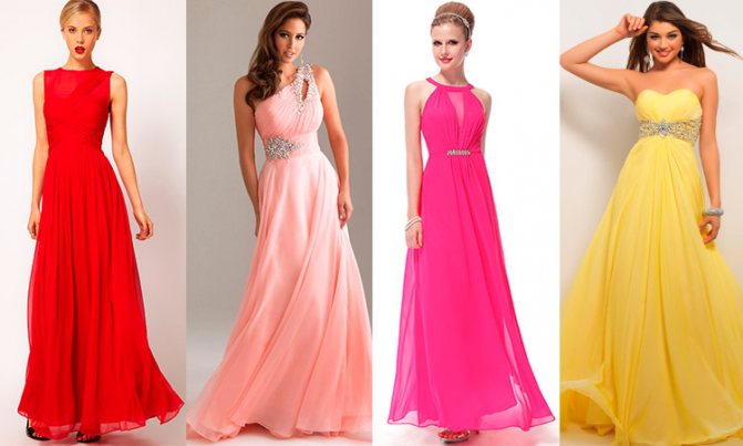 Обычно предпочтение отдается пастельным, мягким тонам зеленого, синего, розового и бежевого цветов. Необязательно выбирать однотонный наряд, можно взять ткань с узорами или вышивкой, с переходом цвета от более темного к более светлому или остановиться на платье с разными цветами юбки и лифа. Последнее, кстати, смотрится невероятно модно.