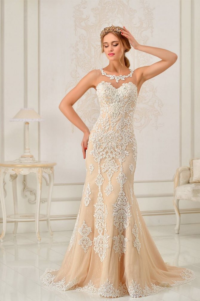 Ниже предоставлены фото свадебных платьев русалка в различных оттенка и вариациях.