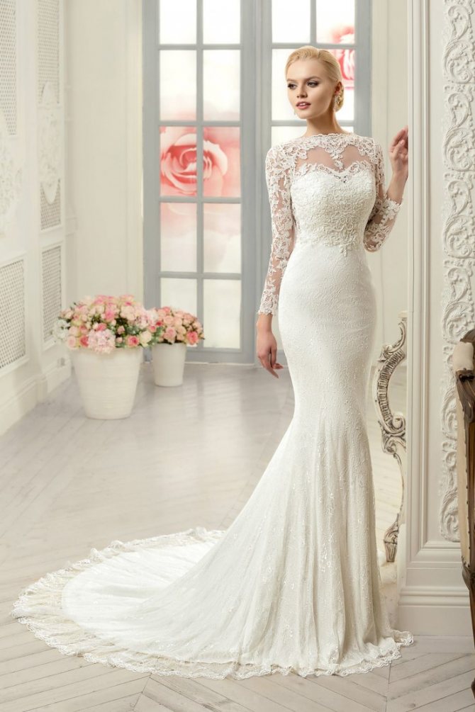 Свадебное платье рыбка: кружевные фасоны со шлейфом, открытой спиной и рукавами