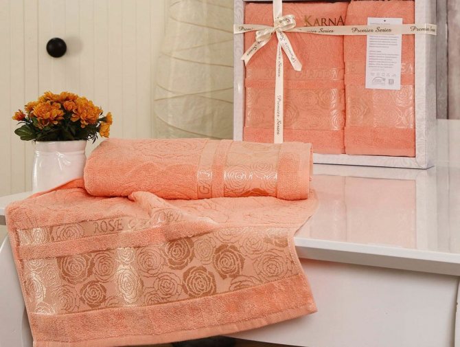 - Набор полотенец, посуды или постельного белья розового цвета также станет хорошим практичным подарком.