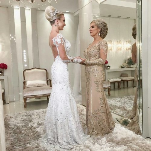 Для матерей невесты и жениха допустимо использование обручей или диадем, но только в том случае, если такие же аксессуары не будет использовать сама невеста. Если выбор сделан, и вы хотите дополнить свой образ именно такой деталью, помните, что она должна быть аккуратной и ненавязчивой. Если на аксессуаре присутствует жемчужное оформление или камни, пусть они будут небольшого размера, в идеале закреплены на тонком обруче или проволоке. Аксессуар может располагаться вокруг собранного пучка, либо украшать распушенные волосы матери.