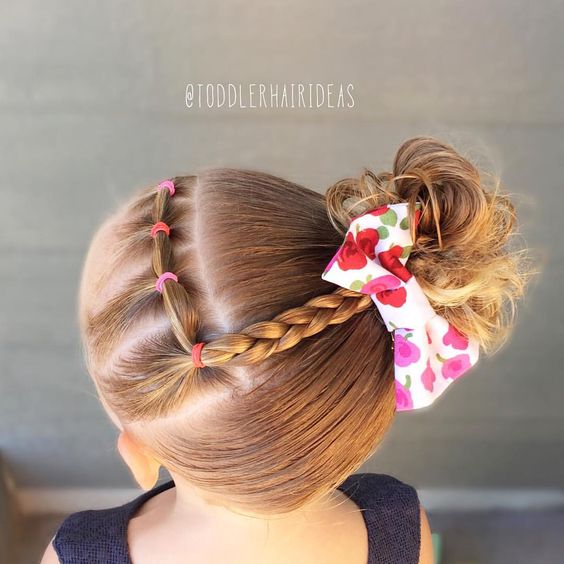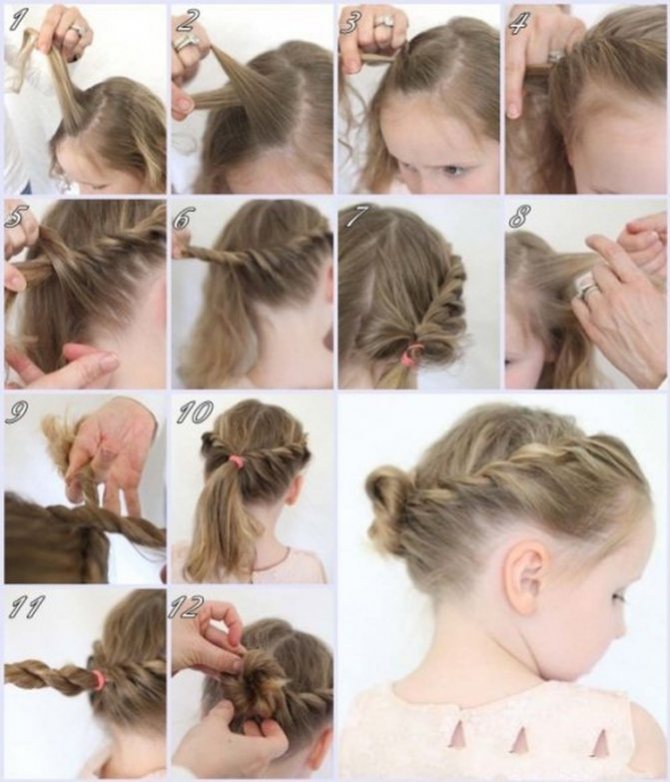 Симпатично и просто. Заплетите простую французскую косу или жгут, закрепите заколкой над линией уха. Вот и все готово! Поскольку эта прическа делается легко и быстро, она идеально подходит для непоседливых малышек, которым нет еще дела до длительных и утомительных укладок волос.