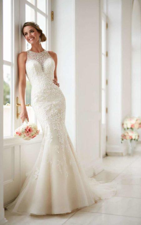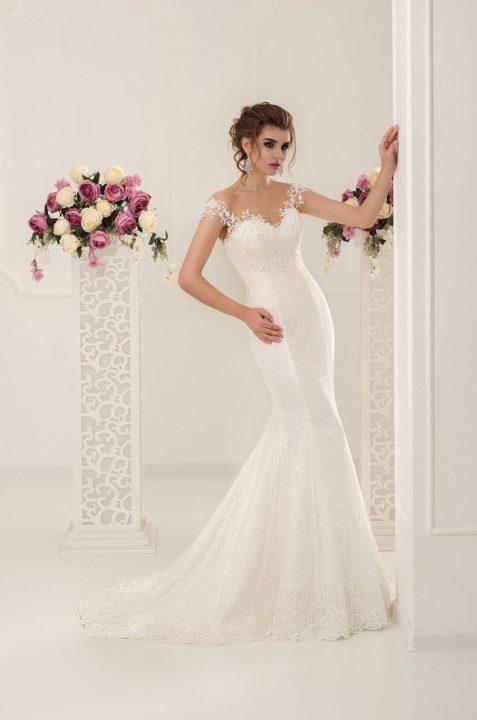 Благодаря оригинальному крою, свадебное платье напоминает хвост русалки. Оно всегда имеет приталенный верх, а также часть до колен, а вот уже ниже имеет клеш. Чаще всего такие платья идут с рукавами, которые могут отличаться длиной.