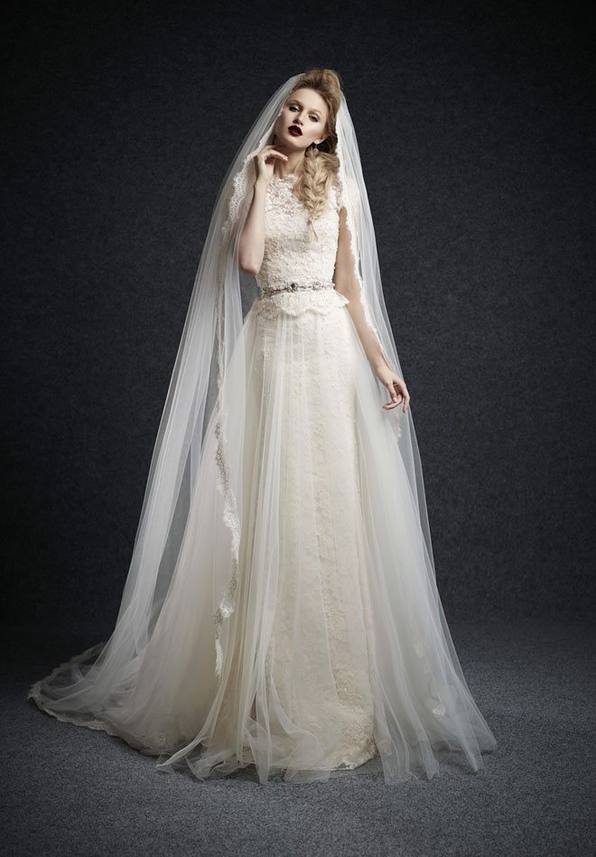 Ее MISS MIST окутана туманом, недосказанностью и призрачностью силуэтов. Вышивки и кружево ручной работы роскошны и неповторимы. Действительно, немного мистичные экземпляры, что и отражено в названии, которую можно перевести как «Мисс Мистика».