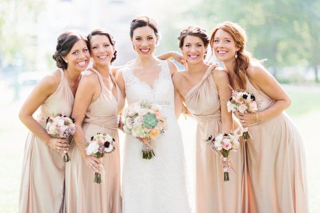 Стилисты советуют покупать фату только после приобретения свадебного платья. Она должна быть один в один с самим нарядом. В противном случае, можно выглядеть крайне нелепо. Обратите внимание на широкую палитру пудрового цвета.