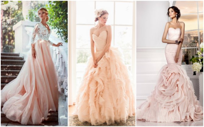 - Уже долгое время нежный цвет пудры находится в списке трендов. Платье в этом оттенке подчеркивает отменный вкус невесты.