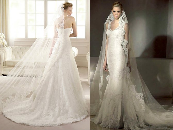 - 150-200 см, подойдет к бальному типу платья, наряду в стиле ампир или модели а-силуэта, для перемещения потребуется помощь подружек невесты;