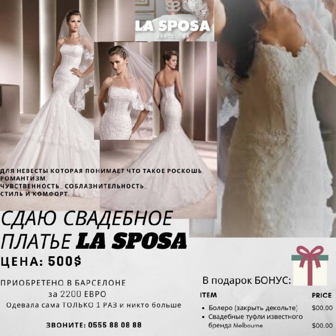 Последний способ — продать свадебное платье с помощью объявления. Будьте готовы вновь потратиться, на этот раз — на продвижение объявления. Иначе оно потонет среди себе подобных, и ваше платье просто никто не увидит.