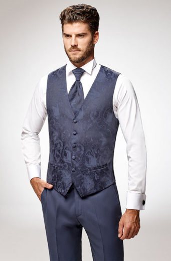 Этот великолепный цвет имеет множество оттенков от светлых голубоватых тонов до глубоких и насыщенных. Благодаря этому, любой молодой человек может подобрать для себя свадебный костюм в наиболее подходящих для него тонах. Мужчинам со спокойным характерам, которые не хотят слишком отходить от традиций, подойдут такие оттенки, как кобальтовый, военный нэви, ультрамариновый, стальной синий. Молодые и креативные могут выбрать более легкие и яркие оттенки: васильковый, лазурный, морской волны, джинсовый, индиго.