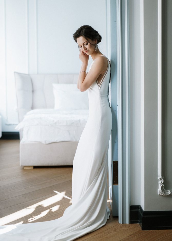 Тренды противоречивы, и этот — полная противоположность сложному декору. Свадебные платья из гладких тканей без отделки так же актуальны. Этот тренд задала Меган Маркл. Лаконичный крой, который подчеркивает силуэт — вот главная изюминка таких платьев.