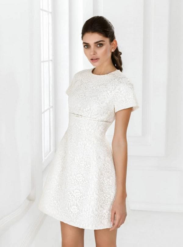 Подходящие модели для скромного бракосочетания продаются не только в узко профильных магазинах, но и в любых точках продажи готового наряда. Экономичный вариант – приобретение повседневного сарафана или платья. Сэкономить позволит и короткое кружевное свадебные платье. ЕГо цена будет ниже длинного аналога, так как мини потребует значительно меньше ткани и фурнитуры.