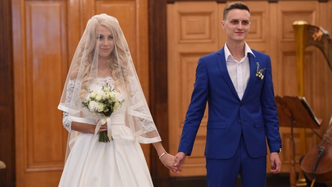 На церемонии недопустим яркий маникюр и макияж. Должны быть закрытые туфли и, как на любой государственной службе, обязательно колготки, даже в тридцатиградусную жару. На работе у нас целый гардероб с набором туфель и платьев под разные свадьбы. Совсем недавно я женила пару, которая пришла в черном. И я быстро переоделась в черное платье, чтобы им было приятно.