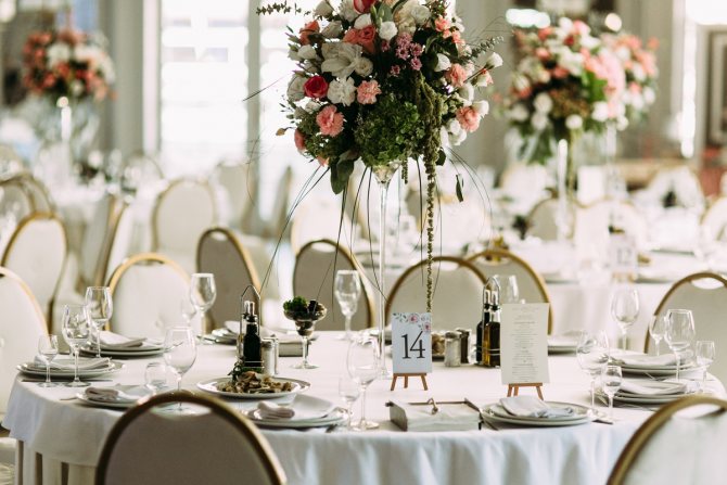 Банкет — это не только посиделки и еда, но и атмосфера, на которую напрямую влияет вид зала и интерьер. Чтобы не приходилось исправлять огрехи пространства декором, еще при выборе площадки учитывайте, насколько подходит интерьер под стилистику вашей свадьбы. Постарайтесь обратить внимание на все: текстиль, посуду, стулья и другую мебель. Чем более подходящую площадку вы найдете изначально, тем меньше придется тратить на дополнительные элементы.