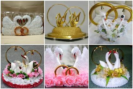 Свадебные хлопоты дарят предвкушение счастья и радости. Если вы располагаете временем и особыми умениями, украсьте лицевую часть изделия красивой вышивкой. Для этого подойдет блестящая нитка люрекса. Вышить можно лебедей, соединенные кольца, сердца и другие эмблемы этого торжественного дня. Вышивку можно выполнить и бисером. Включите чувство меры. Не перестарайтесь с украшениями. Выполните их в одной технике, чтобы не получилось «наляписто».
