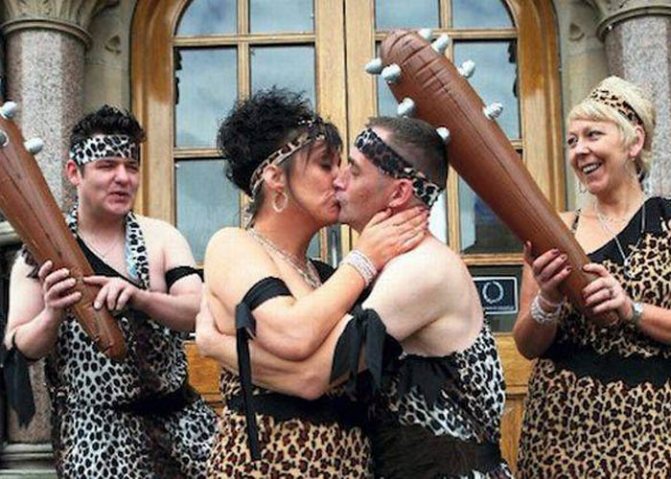 - Свадьба в стиле «Каменный век», вот где гостям придется потрудится найти соответствующий наряд
