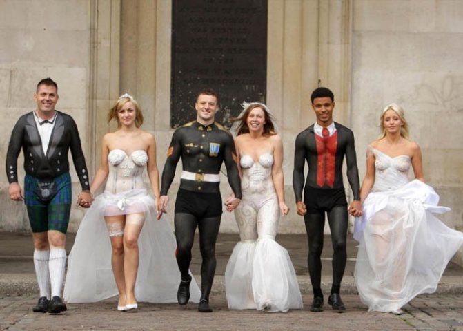 - Свадьба в стиле «Body Art». На подготовление к такому торжеству вам даже не придется много тратиться, достаточно лишь запастись гуашью