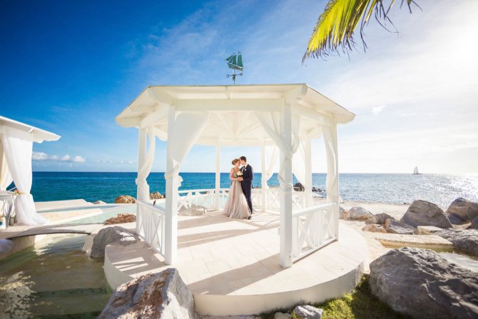 Можно выбрать любое место для торжества – банкетный зал, ресторан, пляж с аркой, украшенной цветами, экзотические и необитаемые места на островах республики.