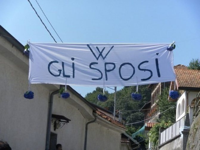 Одним из новшеств последних лет являются свадебные баннеры, пришедшие в Италию из Англии, которые обычно прикрепляются к лобовому стеклу автомобиля молодоженов, а также на пути в церковь и в ресторан, где пара празднует бракосочетание.