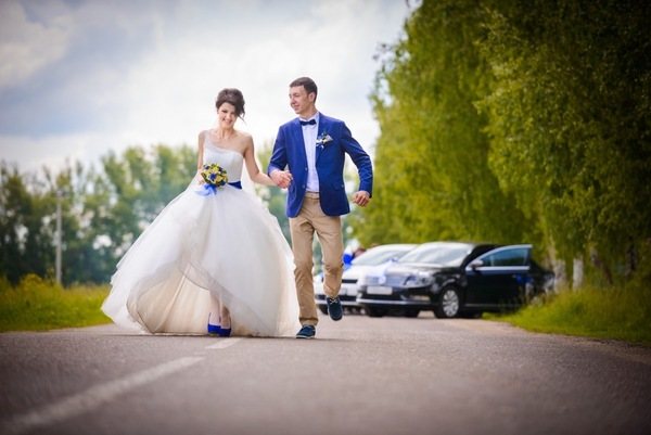 Классическим вариантом свадебного кортежа является белый автомобиль, но если есть возможность, можно заказать машины голубого цвета.