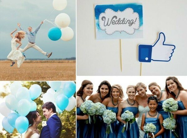 При желании, использовать оттенки синего можно для свадьбы любой тематики. Это возможно благодаря тому, что данный цвет гармонично сочетается с другими.