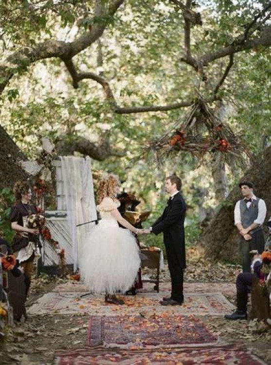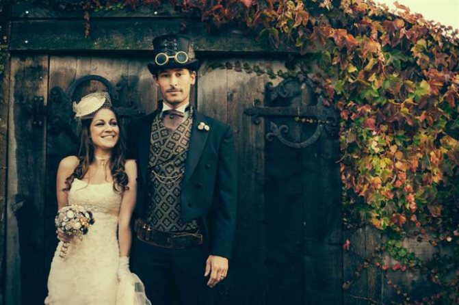 Свадьба в стиле стимпанк предполагает костюмированное мероприятие. Поэтому необходимо как невесте, так и жениху продумать каждую мелочь в деталях гардероба.