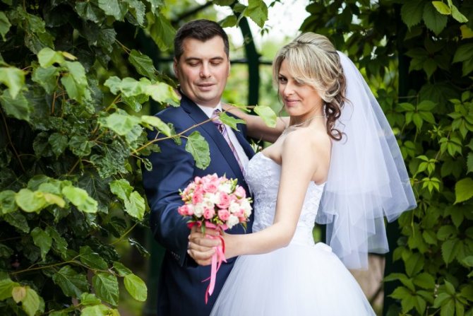 - бижутерии в этом случае должно быть минимальное количество; оттенки цветов должны сочетаться не только с букетом, платьем, но и оттенком собственных волос;