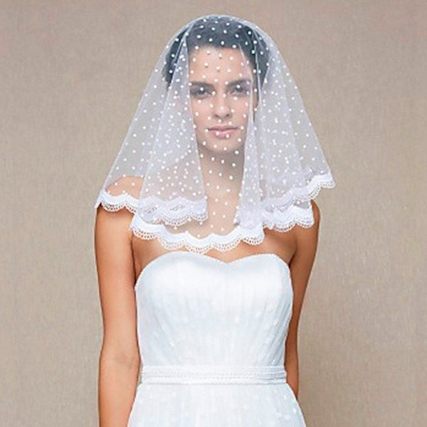 Фата, ниспадающая до плеч может быть как совсем короткой и пышной, так и в виде обычной сеточки, закрывающей глаза. Этот вариант гармонирует с коротким платьем и с пышным низом.