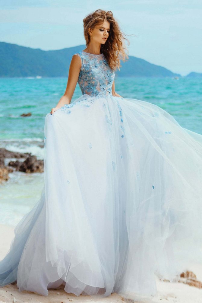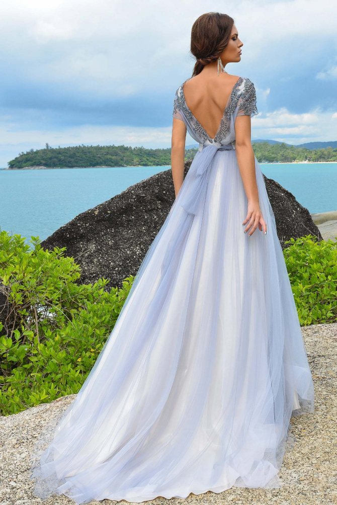 Из необычных вариантов можно выделить градиент, но тоже в легкой форме. Платье затемняется к низу, постепенно становясь из белого серым или бежевым и только на самом подоле цвет становится явным.