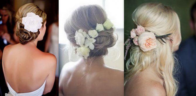- Гребни. Красивое украшение для высокой прически. Гребни могут быть украшены камнями, цветами, стразами, иметь различные рисунки и узоры. Гребни также хорошо сочетаются с непышной фатой. Но помните, что обилие камней и прочих деталей на гребне может сделать прическу тяжелой, а ношение крайне неудобным.