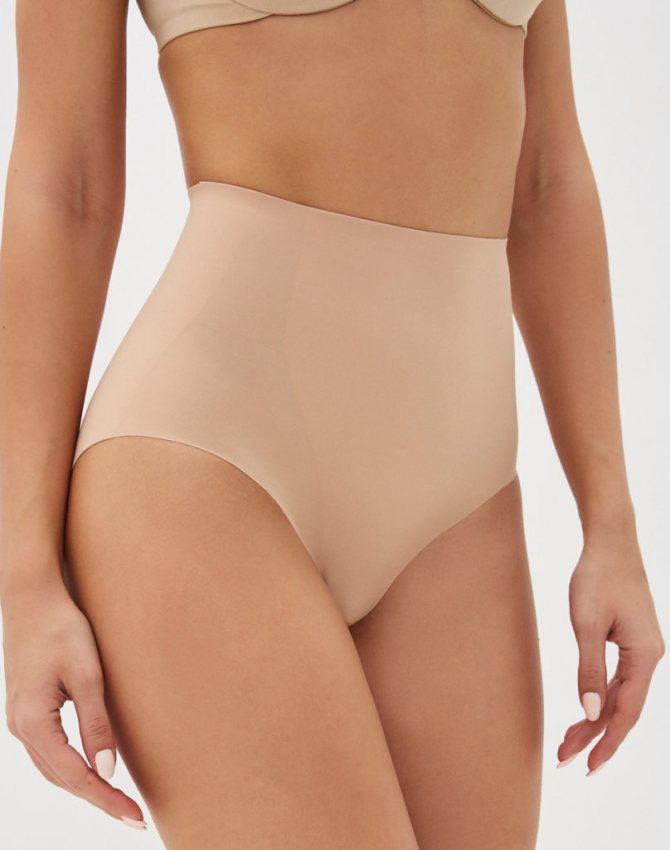 Лаконичная модель – что-то среднее между стрингами и кюлотами. Комфортна в носке, незаметна под одеждой, благодаря отсутствию декора и минимальному количеству швов. Ткань – полиамид, достаточно плотная и эластичная, но сильного утягивающего эффекта ждать не стоит. Продается только в бежевом цвете.