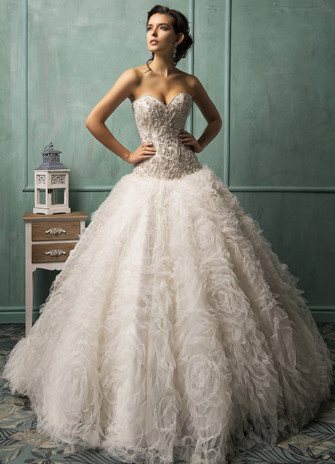 Еще один традиционный классический вариант — бальное платье белоснежного цвета. Такое платье всегда ассоциируется с нежным образом невесты.